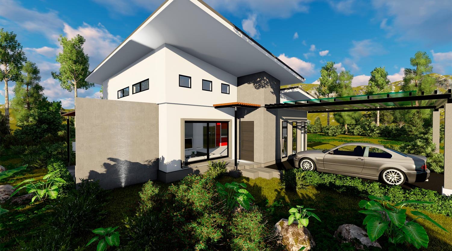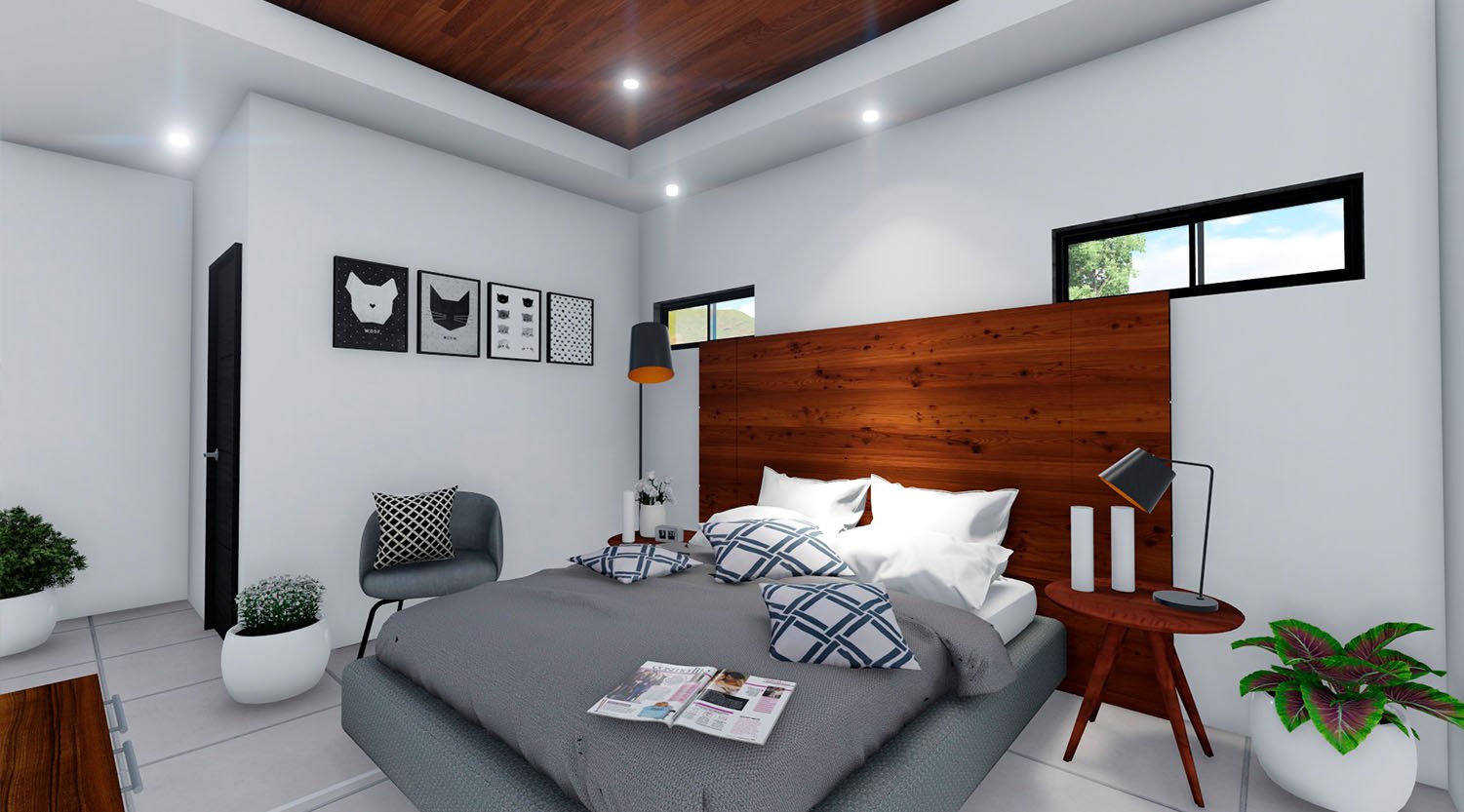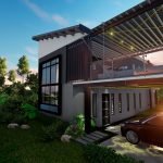 Planta Baja: Área Social, Dormitorio principal con walking closet & baño, 1/2 baño, Área de lavado, Jardín interno, Cochera con pergola para dos carros