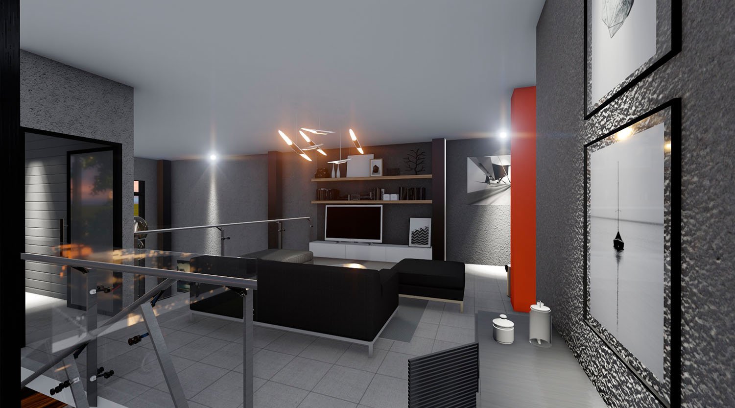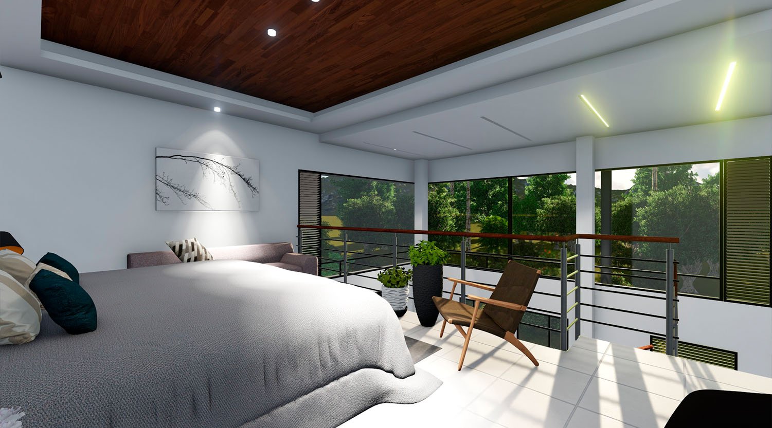 Segunda Planta: Dos dormitorios, 1 baño, Sala TV, Oficina, Mini Bar/BBQ, Terraza, Area para Jacuzzi