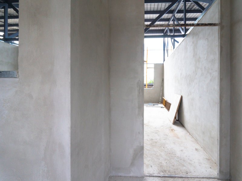 Superficie completamente lisa y lista para pintar. Nuestro sistema constructivo para paredes está compuesto por concreto y acero armado por lo que es resistente a golpes, limpieza a presión, altas temperaturas y vapor.